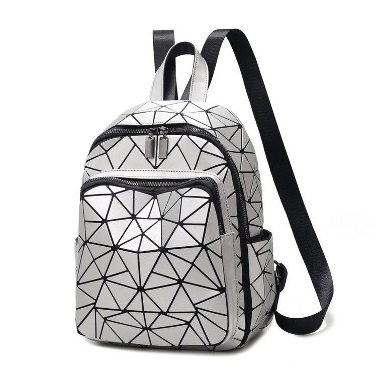 Rucsac dama Lady Miss-maxi geometric argintiu, 35 cm C14
